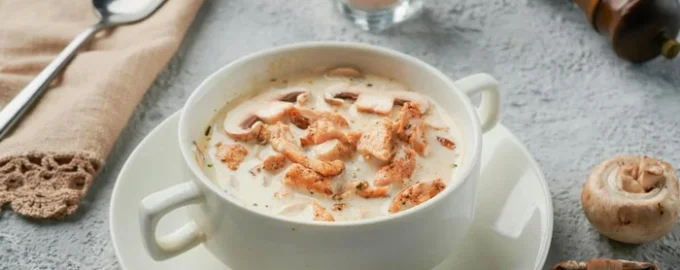 Polévka s houbami a taveným sýrem