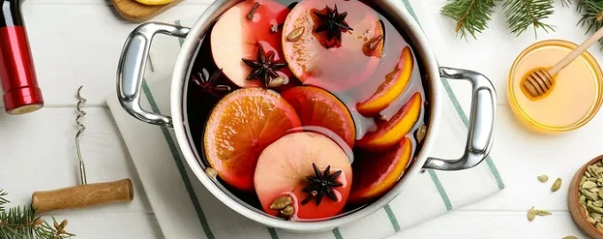 - Hrnec postavíme na mírný oheň a zahřejeme na 70-80 °C. Pokud se objeví pára – je čas ji odstranit, protože vaření „zabíjí“ chuť a alkohol, takže stačí nápoj nechat dobře prohřát.