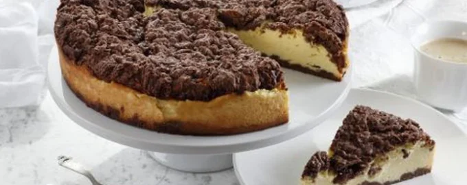 Kombinace vzdušné tvarohové náplně s bohatým čokoládovým koláčem vytváří harmonii chutí. Křehký a voňavý klasický tvarohový koláč na čokoládovém těstě
